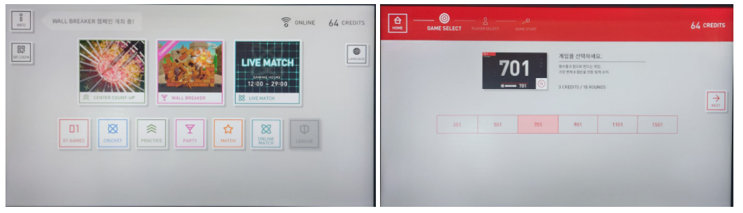 다트라이브 3 의 01 GAME 설정은 기존 다트라이브 2 머신과 비교하여 상당부분 변경되었습니다.