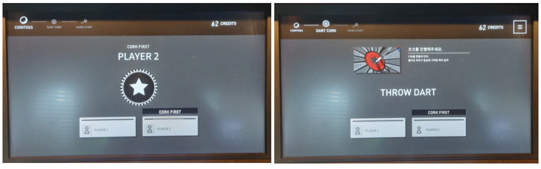 이제 다시 화면으로 돌아와 'CORK START'를 선택해 선/후공을 결정할 수 있습니다.