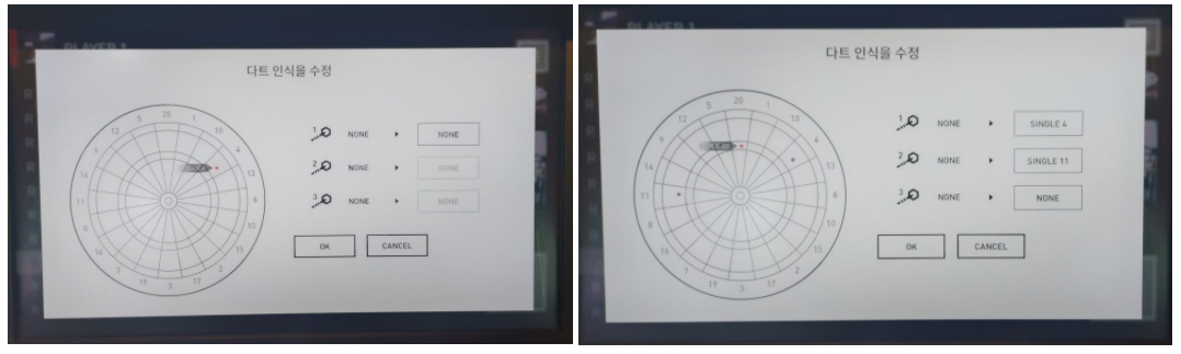 이번 다트라이브 3의 경우, 모니터 디스플레이에서 직접 터치방식으로 잘못 인식된 점수를 변경할 수 있습니다.