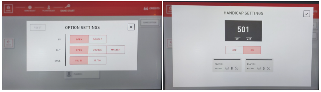 기존의 다트라이브 2 머신에서는 점수 하나하나 눌러서 핸디캡을 주는 번거로운 방식이였지만,