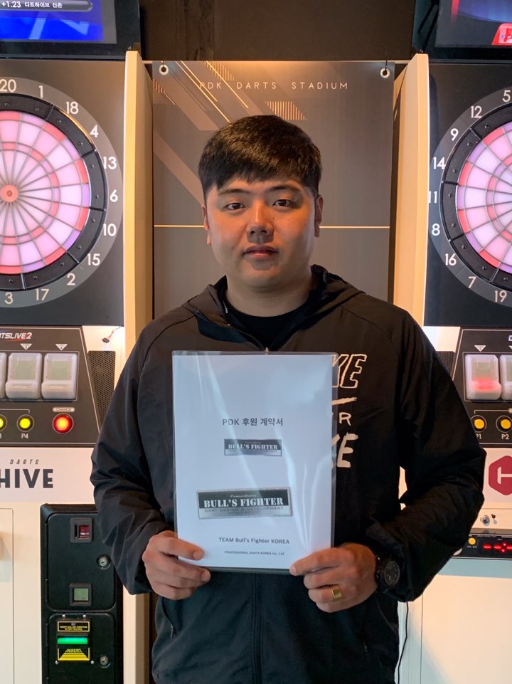 2019 세계다트연맹 루마니아 다트월드컵 대표로 함께 웃고 울었던 선수단의 맏형 ! 김기정 선수가 PDK, 불스파이터, PDK다트스타디움, Lulf와 2020/21년 시즌 후원 재계약을 체결하였습니다.